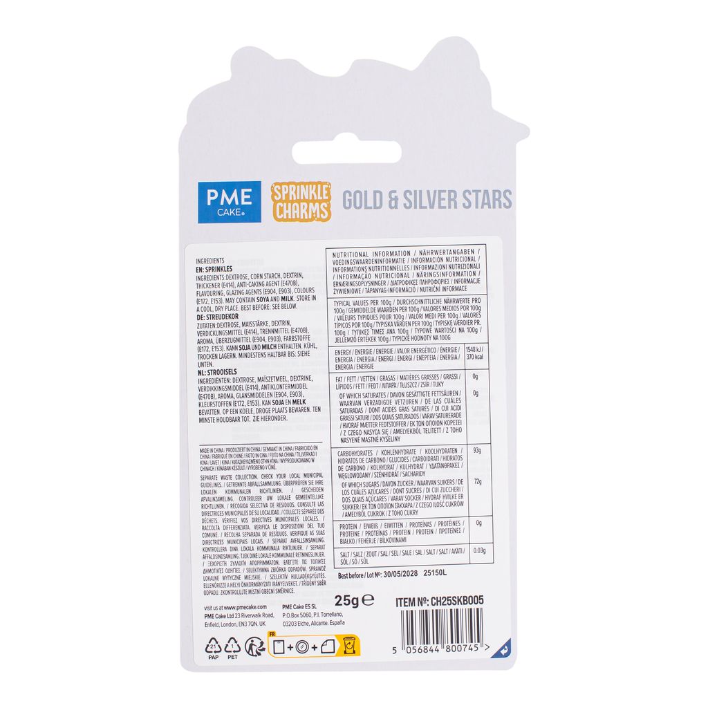- Large sprinkle shapes to give your treats that festive finishing touch. 100% edible & free from AZO colours.