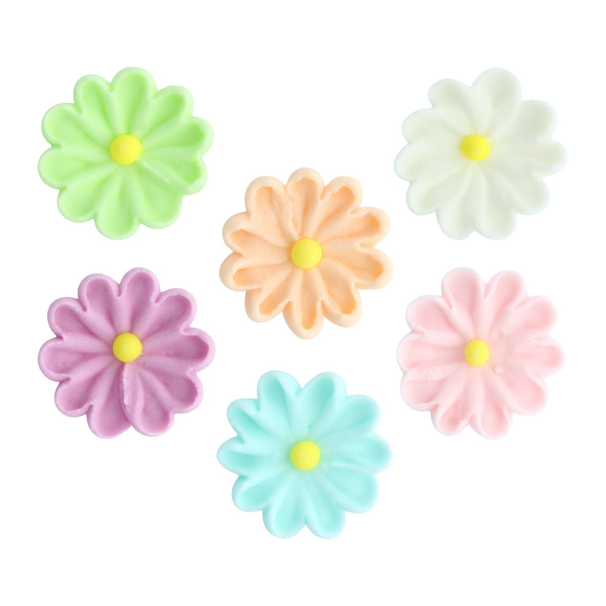 Decorate your Easter, Birthday, Anniversary and Mother’s day bakes with these delightful Edible Pastel Daisies - Sugar Pipings. The pack features an assortment of coloured daisy toppers in soft pastel shades.